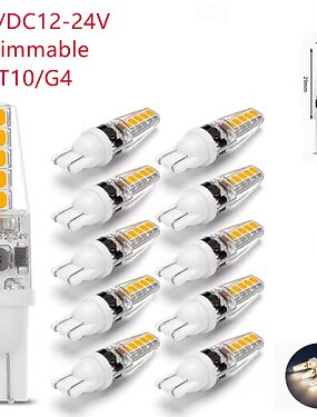10個入り G4 T10 LED電球 2W AC/DC12-24V 2835 SMD 10LED 温白色 360度角度 シャンデリアライト ハロゲンランプの代替照明 RVライト 景観庭園