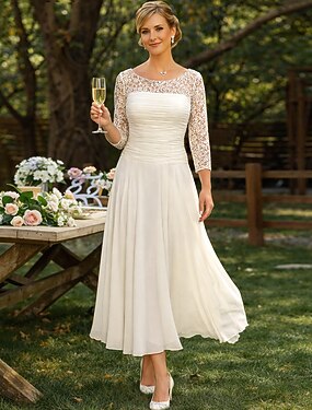 Aライン アンクル丈 パーティードレス 二次会ドレス / カクテルドレス ダービードレス ウェディングドレス エレガント ノースリーブ クルーネック フォーマル 結婚式のゲスト ストレッチ生地 とともに ソリッドカラー