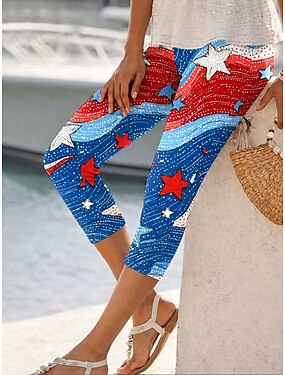 女性用 チノパン レギンス 旅行度假风 ファッション ストリートファッション カプリパンツ ハイウエストPantsアメリカ独立記念日 グラフィック アメリカの国旗 プリント 履き心地よい ソフト 快適 伸縮性あり 日常 アウトドア バケーション ブルー ルビーレッド レッドとブルー 夏 春 秋 スリムフィット