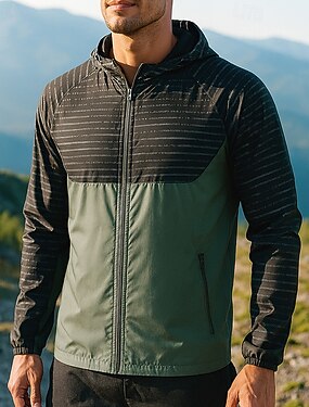 男性用 ウィンドブレーカー ソフトシェルジャケット ハードシェルジャケット アウトドア 防水 防風 ハイキングの服装 ハイキングウェア 春 秋 トップス キャンプ / ハイキング / ケイビング ランニング パッチワーク グリーン グレー