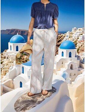 女性用 コットンリネンパンツ ズボン サマーパンツ バギーパンツ 旅行度假风 ファッション カジュアル 普段着 全長 ハイウエスト 純色 平織り ポケット 弾性ウエスト ワイドレッグ 履き心地よい ソフト 高通気性 伸縮性なし 日常 ストリートウェア ビーチ アプリコット 夏 春 秋 ルーズフィット