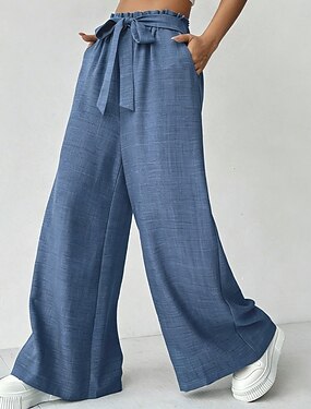 女性用 ズボン サマーパンツ バギーパンツ カジュアルパンツ 旅行度假风 ファッション カジュアル 普段着 全長 ハイウエスト 平織り ドローストリング ポケット ワイドレッグ 履き心地よい ソフト 高通気性 伸縮性なし 日常 ストリートウェア 祝日 ブルー ネービー ブラック バーガンディー 夏 春 ルーズフィット