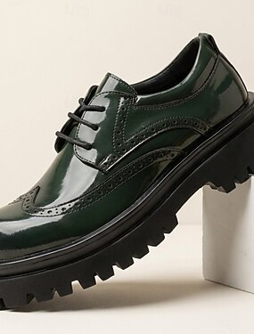 メンズ グリーン パテントレザー オックスフォードシューズ レースアップ チャンキーソール フォーマルドレスシューズ ウィングチップ ビジネスシューズ 結婚式、宴会、パーティー、プロム、そして印象的なイブニングウェアに最適
