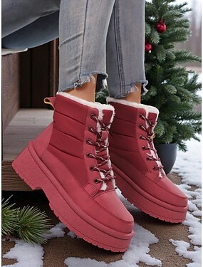 女性用の暖かいファー裏地付き防水冬用ブーツ、滑り止めソール付きレースアッププラットフォームスノーブーツ、寒い季節に最適なファッショナブルなアウトドアカジュアルシューズ