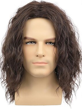 男性用ブラウンのウェーブウィッグ - ミディアムレングスでナチュラルなミドルパート、耐熱性合成毛、男性用コスチュームコスプレ、カーニバルフェスティバルパーティー用
