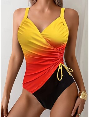 女性用 スイムウェア ワンピース モノキニ 水着 おなかコントロール ハイウエスト スリム バックレス 旅行度假风 ビーチウェア オンブル’ Vネック ノースリーブ 水着