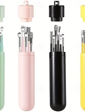 6個のステンレス製耳垢除去ツールセット スパイラル回転式耳かきスプーン 耳かきスプーン 耳垢の清掃と収集に