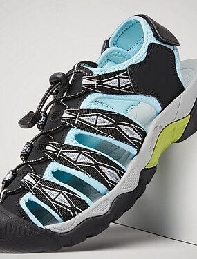 メンズ ブラック&ブルー フェイクレザー アウトドアスポーツサンダル – 旅行やリゾートに最適な通気性の良いハイキング&アドベンチャーシューズ