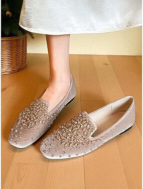 レディースベルベットラインストーンスリッポンローファー - パーティーやスタイリッシュなイブニングウェアにぴったりのエレガントなキラキラフラットシューズ