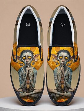 メンズ マルディグラ クリエイティブエイリアンフェイスプリント スリップオンシューズ - アーティスティックでカラフルなデザイン、カーニバルやトレンディなフェスティバルに最適