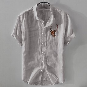 男性用 リネンシャツ カジュアルシャツ コットンリネンシャツ ボタンアップシャツ アニマル柄 バケーション デイリーウェア ホワイト ダークネイビー スカイブルー カーキ色 半袖 ラペル オールシーズン 衣類 バックル