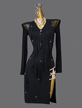 Aライン セミロング丈 パーティードレス 二次会ドレス / カクテルドレス ウェディングゲストドレス イブニングドレス エレガント きらびやかな セレブスタイル 七分袖 ハイネック ガーデンパーティー 結婚式 ストレッチクレープ とともに スパンコール アップリケ