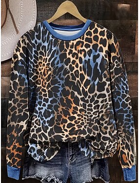 女性用 プルオーバースウェットシャツ グラフィック レオパード ファッション カジュアル プリント 長袖 クルーネック レギュラートップス カジュアル ストリート 日常着 ブルー 秋 冬
