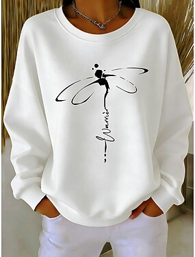 女性用 プルオーバースウェットシャツ プリント グラフィック カジュアル 長袖 クルーネック レギュラートップス カジュアル ストリート 祝日 ライトブルー ブラック ホワイト イエロー ダークピンク 春 秋 冬