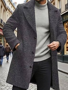 男性用 オーバーコート トレンチコート ロングトレンチコート バケーション 日常 秋 冬 ポリエステル 防風 保温 アウターウェア 衣類 ファッション クラシック 平織り ポケット ラペル シングルブレスト 一つボタン