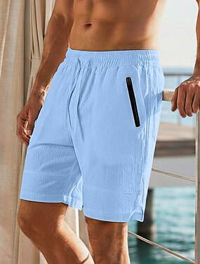 男性用 ショーツ リネンショーツ サマーショーツ ビーチショーツ ドローストリング ポケット 弾性ウエスト 平織り ソリッドカラー 履き心地よい 高通気性 ショート カジュアル 日常 祝日 ファッション クラシック ブルー ホワイト