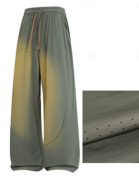 男性用 グラデーションカラー 抽象芸術 ズボン カジュアルパンツ バギーパンツ ミディアムウエスト カジュアル アウトドア バケーション 伸縮性のあるドローストリングウエスト ポケット付きリネン風パンツ 春 秋 3Dプリント ブルー ブラック グリーン