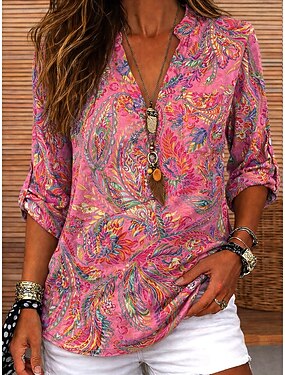 イースター 女性用 ブラウス プリント フラワー グラフィック ヴィンテージ トロピカル風 ハワイアン 長袖 Vネック ロングトップス 日常 祝日 ビーチウェア ピンク 夏 春