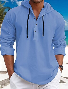 男性用 カジュアルシャツ パーカー ブラック ホワイト ダークネイビー カーキ色 アプリコット 長袖 平織り フード付き カジュアル 日常 パッチワーク 衣類 エレガント ファッション カジュアル