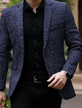 男性用 ブレザージャケット ノッチカラー ファッション ソリッド Blazer ダークブルー スリムフィット シングルブレスト 2つボタン