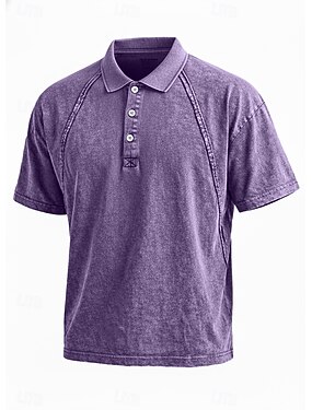 男性用 ポロシャツ コットン100% アシッドウォッシュシャツ カジュアル ワーク ラペル リブ付きポロカラー 半袖 ベーシック 近代の 平織り ボタン 春夏 夏 春 ダークブラウン ピンク ネイビーブルー スカイブルー パープル ブラウン ポロシャツ