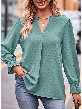 女性用 ポップオーバー シャツ カジュアルシャツ ブラウス 純色 旅行度假风 ストリートファッション スタイリッシュ 長袖 Vネック レギュラートップス 日常 アウトドア 祝日 ブルー ブラック ホワイト イエロー ルビーレッド 夏 春 秋