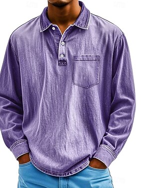 男性用 ゴルフポロシャツ ストリート ビジネス クラシック 長袖 ヴィンテージ ベーシック 純色 ポケット ビンテージ 秋 冬 季節の変わり目 レギュラー ブラック ダックブルー グリーン ライトブルー パープル ブラウン ゴルフポロシャツ
