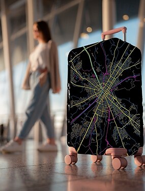 風景プリントの荷物カバー ストレッチスーツケースプロテクター 伸縮性のある旅行用荷物カバー