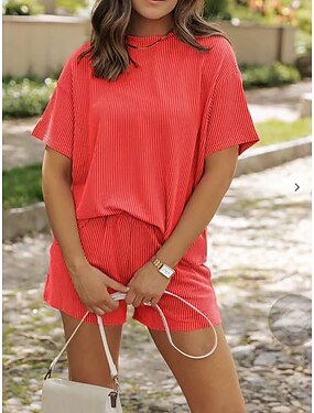 女性用 ショーツセット ボレロトップ 半袖 ラウンドネック 平織り ストライプ フリル パッチワーク エレガント ファッション ストリートファッション カジュアル 日常 アウトドア ブラック ルビーレッド ダークネービー 夏 ルーズフィット