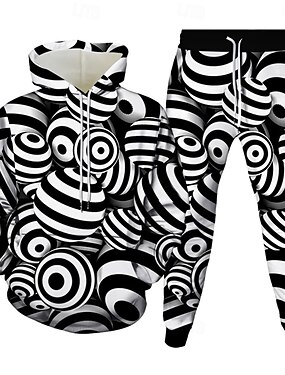 男性用 球 2個 3Dスウェットシャツセット トラックスーツ フーディースウェットシャツ 長袖 長ズボン フード付き カジュアル 普段着 アスレイジャー 3Dプリント 春 秋 冬 ブラック