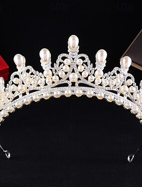 クラウンティアラ ヘッドドレス 合金 結婚式 誕生日 エレガント と ラインストーン パール かぶと 帽子