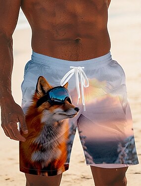 男性用 動物 きつね ノベルティ柄 スイムトランク スイムショーツ ボードショーツ ミディアムウエスト おかしい ハワイアン ビーチでの休暇 サイドポケット メッシュライニング 伸縮性のあるドローストリングウエスト デザイナー 衣類