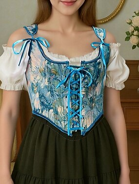 レトリ/ヴィンテージ 中世 ルネッサンス コルセット ベスト ビスチェ レースアップ フラワー ジャカード 仮装 女性用 セルティック ファンタジー 王立 クリスマス ハロウィーン カーニバル パーティー カジュアル/普段着 LARP 成人 コルセット オールシーズン
