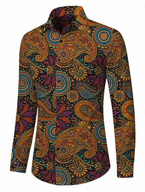 レトリ/ヴィンテージ 1970年代 シャツ アロハシャツ 長袖 ヒッピー ペーズリー 仮装 男性用 マスカレード 音楽祭 パーティー デイリーウェア 成人 シャツ