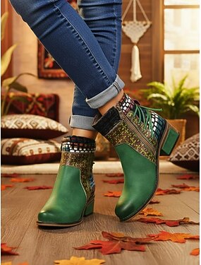 カラフルなパッチワークとジッパーが付いたボヘミアンシックなレディースアンクルブーツ - 秋冬にぴったりのヴィンテージスタイルのレースアップブーツ