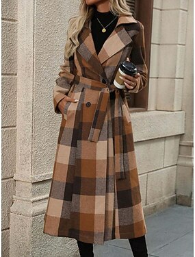 女性用 冬物コート 冬物ジャケット 快適 高通気性 ポケット ボタン プリント カジュアル チェック フォーマル バケーション ストリート カジュアル シングルブレスト ロング 折襟 レギュラー 長袖 アウターウェア 格子縞 春 秋