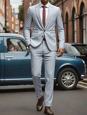 男性用 ブレザー セット ビジネス カクテルパーティー ウェディングパーティー 2個 ファッション カジュアル 春 秋 ポリエステル 平織り ポケット ボタン 快適 シングルブレスト ブレザー シルバー