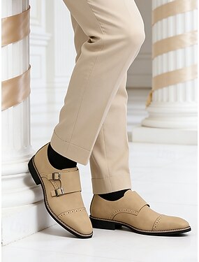 メンズレザーダブルモンクストラップシューズ - 洗練された履き心地で、結婚式、フォーマルなセレモニー、特別な機会に最適です。