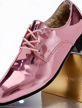 メンズのメタリックピンクのパテントレザードレスシューズ、結婚式、ナイトクラブ、流行に敏感なイベントに最適な光沢のあるレースアップオックスフォードシューズ