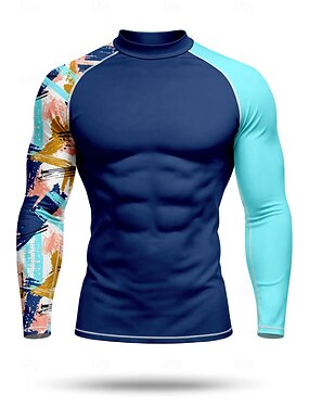 男性用 ラッシュガード スイムシャツ 抽象的 カラーブロッキング UPF50+ UVプロテクション 速乾性 長袖 スイムウェア ラッシュガード サーフィン カヌー ビーチ 夏