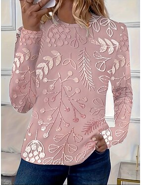 女性用 Tシャツ プリント フラワー グラフィック 植物 ヴィンテージ ファッション スタイリッシュ 長袖 クルーネック ラウンドネック レギュラートップス 日常 週末 ピンク 春 秋 冬