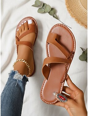 レディース ライトブラウン フェイクレザー フラットサンダル - ミニマルなクロスストラップ カジュアル サマースタイル、休暇、ビーチでの散歩、街の旅行、普段使いに最適な軽量で快適なスライドシューズ