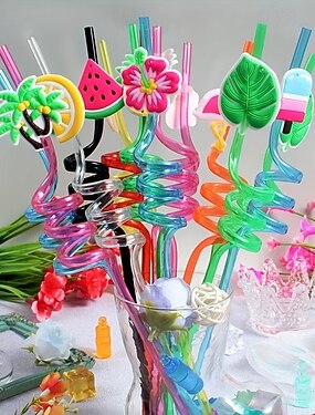 ハワイアン熱帯雨林をテーマにしたストロー10本/20本入り。再利用可能ならせん状のストローで、食品グレードの高品質PET素材を使用。夏のビーチ、プール、誕生日パーティーに最適です。