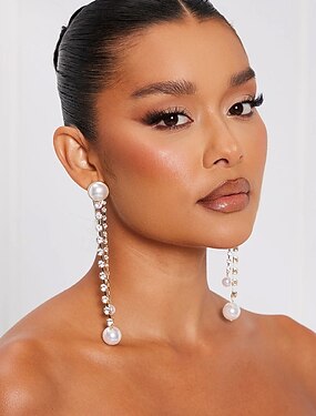 女性用 スタッドピアス 幾何学的 ドロップ 貴重品 エレガント ファッション シンプル 人造真珠 イミテーションダイヤモンド イヤリング ジュエリー シルバー / ゴールド 用途 結婚式 パーティー ワーク 日常 1ペア