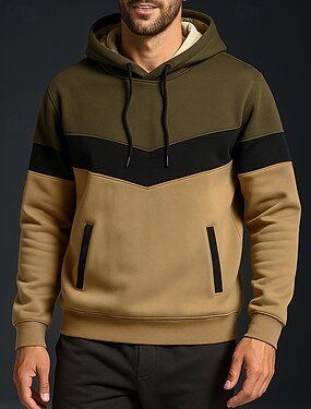 男性用 パッチワーク カジュアルスウェットシャツ プルオーバーパーカー 秋冬 厚型 ポケット付き 長袖 アスレイジャー ウォーム ランニング 屋外 トラベル ホワイト イエロー アーミーグリーン スポーツウェア アクティブウェア