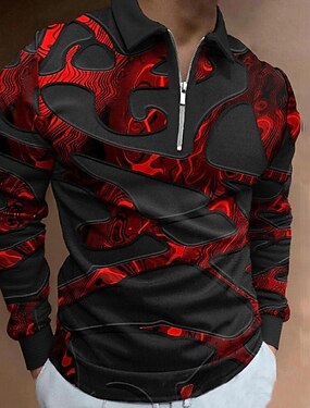 男性用 3Dプリント 幾何学的な ポロ 長袖 折襟 近代の カジュアル スポーツ アスレイジャー カジュアル/普段着 ジッパー 春 秋 冬 ブルー レイクブルー ルビーレッド