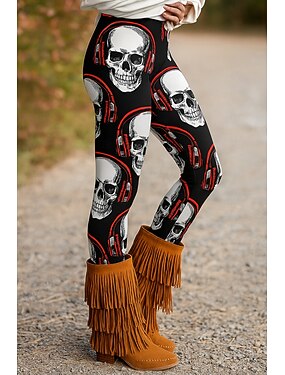 レディース レギンス バケーション ビンテージ エスニックスタイル アンクルレングス ハイウエスト スカル 3D プリント 速乾性 通気性 ソフト ストレッチ アウトドア バケーション レギュラーフィット レッド パープル オレンジ グリーン 秋