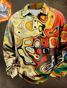 男性用 抽象的 幾何学的な ポロシャツ サーマルシャツ 長袖 ポロシャツ ラペル カジュアル アスレイジャー 祝日 デイリーウェア 3Dプリント 秋 冬 ブルー イエロー ルビーレッド