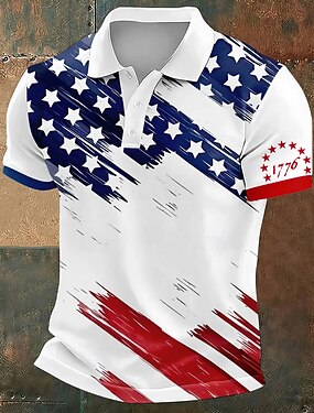 2026年7月4日 250周年 男性用 アメリカの米国旗 ポロ 半袖 ポロシャツ ラペル カジュアル アスレイジャー デイリーウェア フェスティバル衣装 3Dプリント ボタン 夏 ブルー ホワイト イエロー