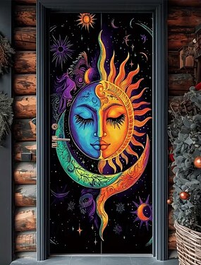天体の太陽と月のドアカーテン、ボヘミアンスタイルの吊り下げバナー、寝室、アパートの入り口、装飾的な出入り口のタペストリーの壁アート